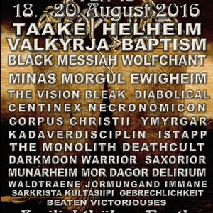Black und Pagan Metal Festival an der Ostseeküste. Freilichtbühne mit angrenzendem Campingplatz im Wald.