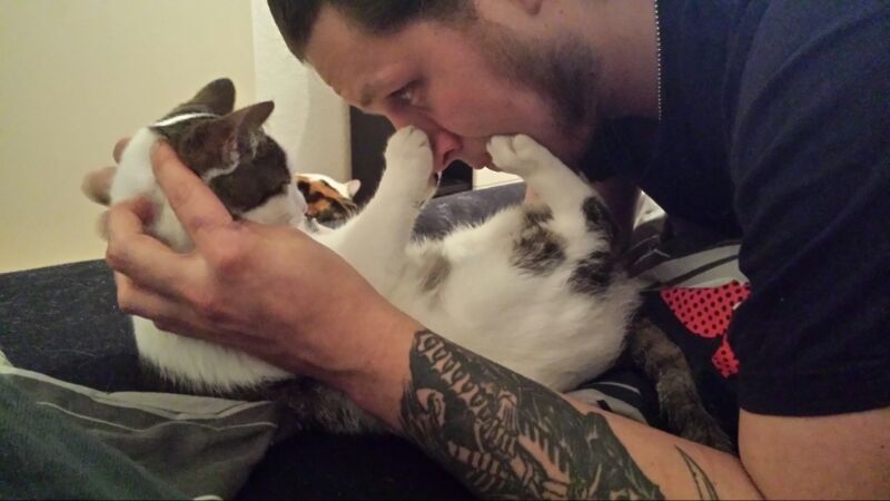 Mein Kater hätte mir das Gesicht zerfetzt - halt ganz das "Herrchen".. aber süßes Bild