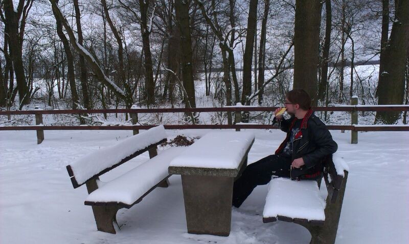 Wenn die Autobahn wegen Schnee schon spontan zur 30-Zone umgebaut wird, muss man sich auch mal n Toastbrot im Freien gönnen!